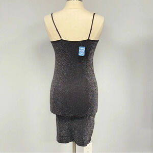 NWT Free People Intimately Mini Slip Dress Black Silver Sparkle Combo Size M/L