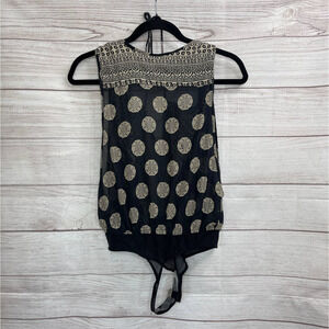 Effortlessly ethereal and always-tucked-in, this sweet bodysuit is featured in a billowy, tie-front silhouette with exaggerated dropped armholes and mixed vintage-inspired print.