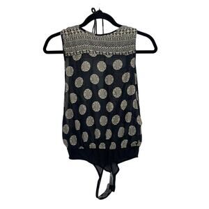 Effortlessly ethereal and always-tucked-in, this sweet bodysuit is featured in a billowy, tie-front silhouette with exaggerated dropped armholes and mixed vintage-inspired print.