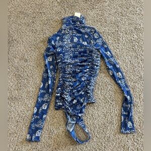 NWT Free People Intimately Under It All Printed Bodysuit Bluebell Combo Blue S