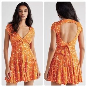 NWT Free People It Takes Two Floral Wrap Knit Skater Dress Dress