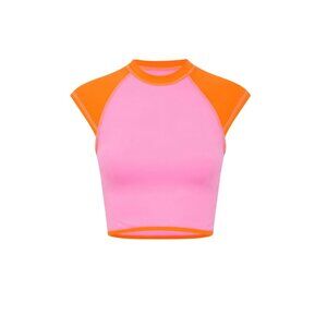 -Fitted t shirt rash to -Compression lycra -Cropped length