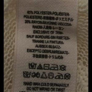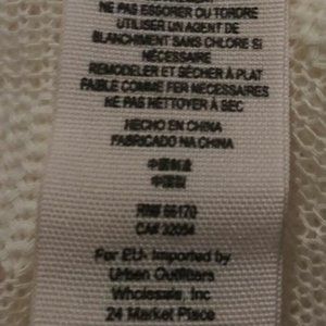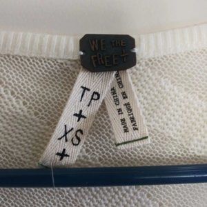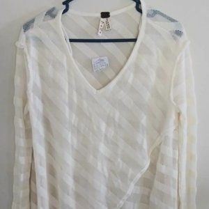 NWT We The Free (Free People) v-neck ivory sheer knit tunic top with diagonal lines. Panels of material cross over each other. 65% polyester 35% rayon. Comes from a smoke free home. Cross posted.