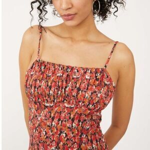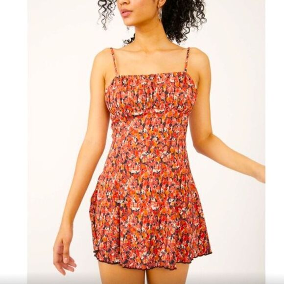 NWT Free People Jamie Strappy Printed Mini Dress / Rouge Combo