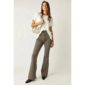 NWT Free People Jayde Flare Jeans High Rise Denim Railroad Train Car Stripe 24