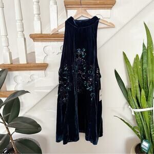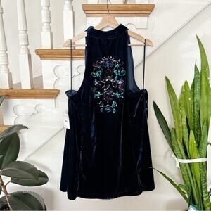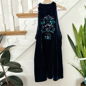 NWT Free People Jill Sequin Swing Mini Dress Navy Velvet Halter Size M Medium