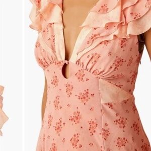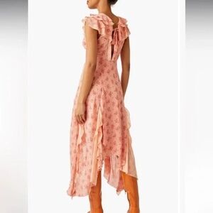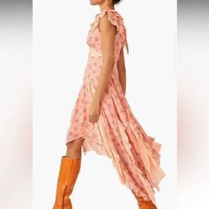 NWT Free People Joaquin Peach Combo Floral Ruffle Dress in Large