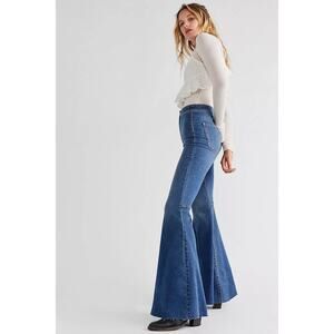 NWT Free People Just Float On High Rise Flare Jeans Medium Wash Size 25 Boho 70s