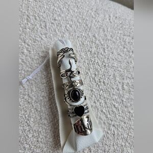 NWT- Free People, Just What I Needed Ring Set of 10, Silver/Onyx - $38