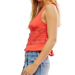 NWT Free People Kianna Lace Tank in Radiant Watermelon