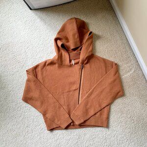 NWT Free People Knit Side Zip LS Hoodie, Size Small/Medium, Orange/Brown