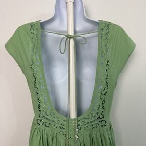 Elevate your fashion game with this stunning Free People Laine dress in a beautiful Glass Grass color. Perfect for any occasion, this dress features a round neckline, short cap sleeves, and a soft cotton closure. The dress is made of 100% cotton with a 100% cotton lining, making it comfortable to wear during any season - summer, fall or spring.