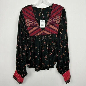NWT Free People Large Dolman Sleeve Lady Love Printed Embroidered Blouse