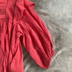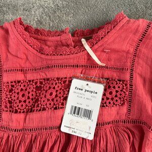 NWT Free People Laura Cotton Ruffled Top Red Berry Women's XS Peasant Boho