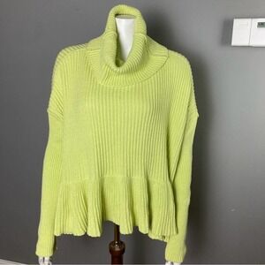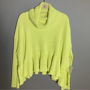 NWT Free People Layer Cake cable sweater tiered ruffle lime green oversized size small
