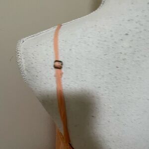 Features: V-neckline, button-front closure, adjustable shoulder straps, smocking at back, ladder lace detailing