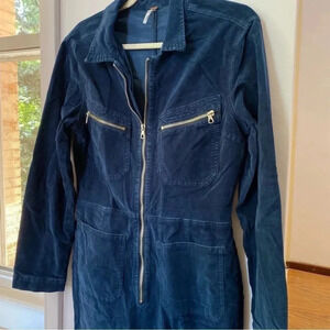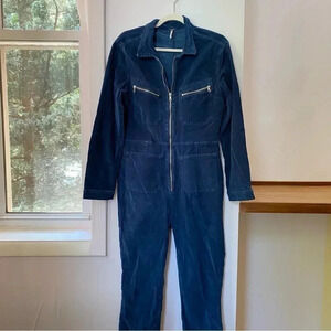 NWT Free People Lennox Jumpsuit Cord Denim Utility One Piece in Navy Blue