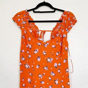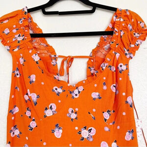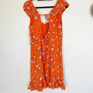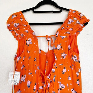 NWT Free People Like A Lady Cap Sleeves Printed Mini Dress Orange Com S…