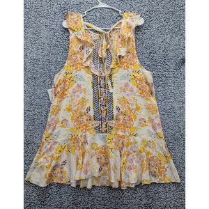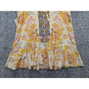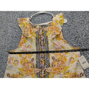 NWT Free People Linen Summer in Tulum Floral Mini Dress Womens M Colorful Yellow