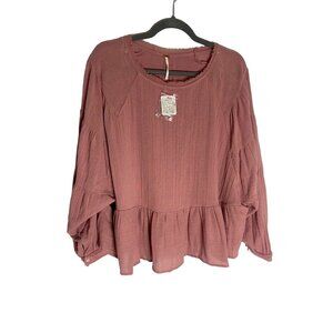 NWT, no flaws, size XS. Free People long sleeve flowy pink blouse. Oversized boxy fit with a peplum bottom. Peekaboo back. 100% Cotton.