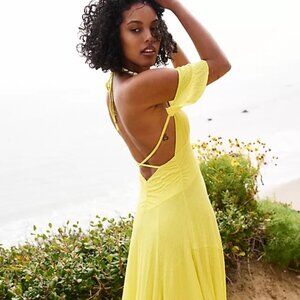 NWT Free People Louisa Strappy Back Yellow Maxi Dress