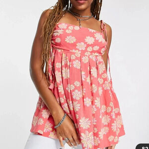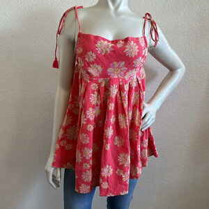 NWT Free People MOLLY SLEEVELESS COTTON TUNIC IN HOLLYHOCK COMBO
