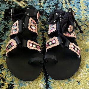 Set up that ethnic look with the Free People® Mantra Mirror Sandal.