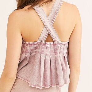 Denim waist-cut blouse with "vintage" finish, pleats and crossed back. Its loose silhouette makes it fresh and versatile to combine. Available in black and pink. 100% cotton.