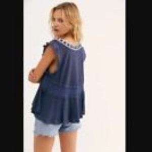 NWT Free People Market Place V-neck top in denim blue combo XS