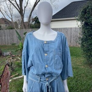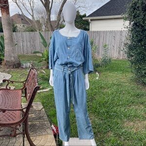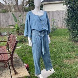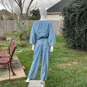 NWT Free People Marley Belted Tie Waist Lightweight Puddle Leg Denim Jumpsuit
