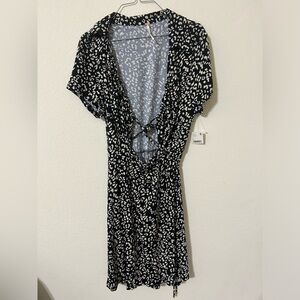 Free People Marsaille Cut Out Mini Dress Black Combo Women's Size Large Wrap Tie
