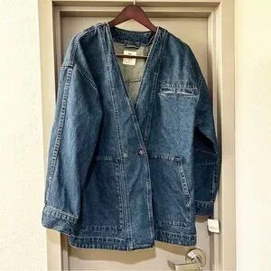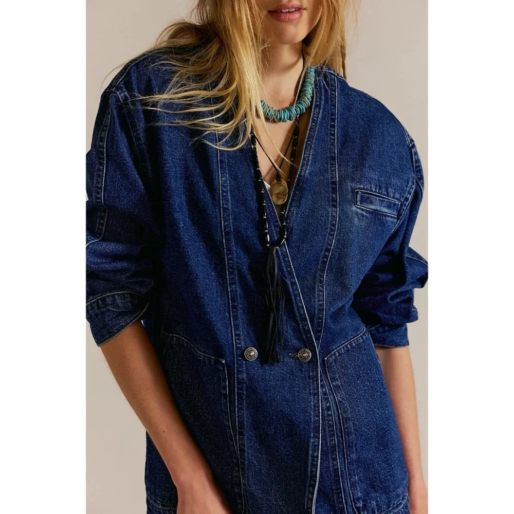 Sleek and so classic, this denim jacket from We The Free Is featured in a blazer-inspired cut and double-breasted design for the perfect mix of sophistication and heritage.