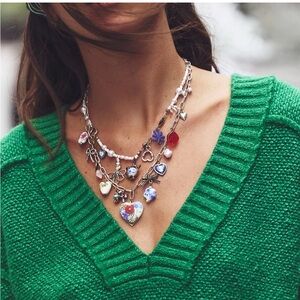 NWT Free People Maximillian Charm Necklace New Candy Layered Boho silver blue