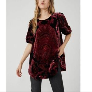 NWT Free People Maye Printed Velvet Tunic / Black Combo