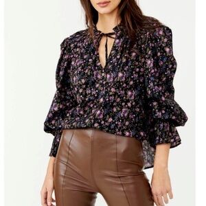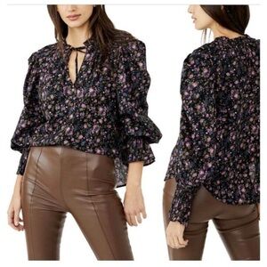 New with tags Free People Meant to Be floral patterned peasant balloon sleeve blouse
