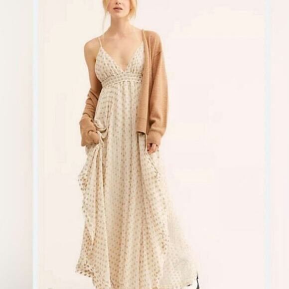 NWT Free People Metallic Dot Meredith Small Maxi Dress