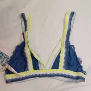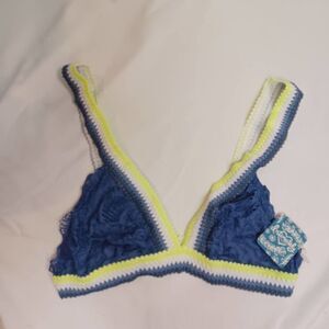 NWT Free People Mika Bralette Crocheted Lace Blue S Small