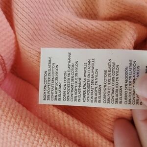 38% polyester 5% elastane 57% cotton Hand wash cold, lay flat to dry Approximate measurements sz S:Chest 13.5” Length 25”