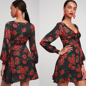 NWT Free People Morning Light Fit & Flare Mini Dress Floral Print Sz 4 Black/Red