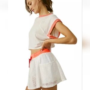 NWT Free People Movement Good Sport Tee White Neon Orange Small
