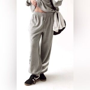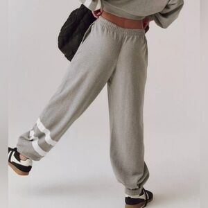 NWT Free People Movement M All Star Logo Pants in Heather Gray/White Sweatpants