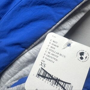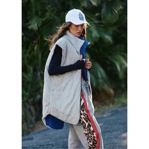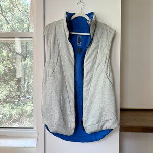 New with tags Free People Movement Slalom Reversible Vest in Stellar Blue (cobalt), reversible to heather grey sweatshirt-style fabric.