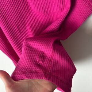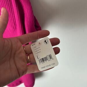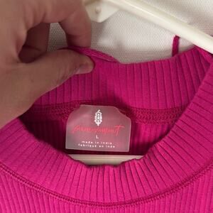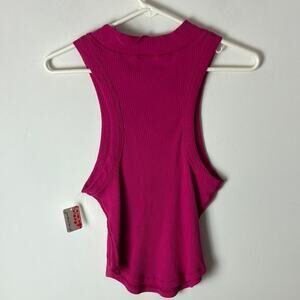 New With Tags Free People FP Movement Tank Top. This is a women's large. Bright pink color that the tag describes as fuschia throughout. Front pocket. Vertical ribbing. Embroidered FP Movement logo by the waist. 94% cotton, 6% elastane. Could be cute for spring/summer!