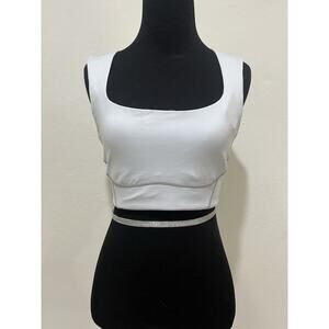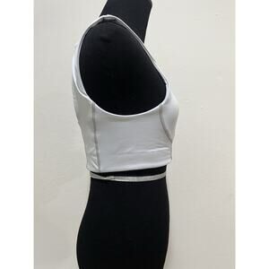 The NWT Free People Movement You're a Peach Sports Bra in Ice Grey Size L is a stylish and functional activewear piece designed for women. Made from a blended fabric of polyester and spandex, this lightweight and breathable sports bra features a pullover closure, wide straps with logo accents, and a full cup coverage. With a medium support level and a solid color pattern, this sports bra is perfect for yoga, athleisure, or any performance activity. The relaxed fit and stretchy material make it comfortable for all-day wear, while the brand's signature athletic theme adds a touch of sporty style to your wardrobe.