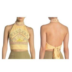 NWT Free People Nectar Halter Crop Top XS Embroidered Boho Eclectic Festival