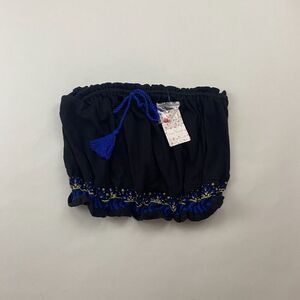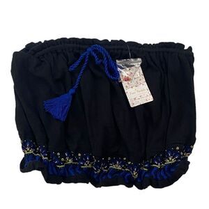 NWT Free People No More Tiers Black Tube Top Embroidered Tassels OB978531 Sz L