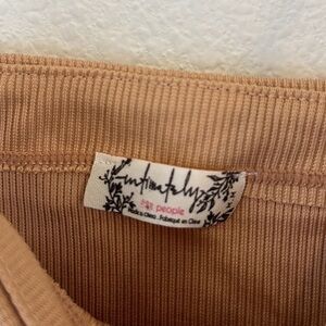 Free People On Your Side Nude Ruched Bodysuit ~ Stretchy ribbed knit shapes this sassy bodysuit with a straight neckline and adjustable spaghetti straps. Ruched side details create the perfect fit while matching cheeky bottoms Pit to pit 12” Length 24” (to clip) Measurements are approximate New with tags