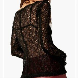 NWT Free People On the Road Twisted Lace Long Sleeve Top in Black