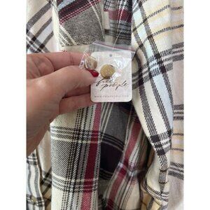 NWT Free People Patched Up Plaid Shirt at Free People Oatmeal Size: Large
