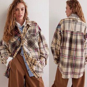 NEW Free People Patched Up Plaid Shirt at Free People Oatmeal. New with tag!